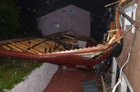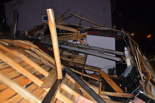 Zonguldak'ta fırtına 3 katlı binanın çatısını uçurdu. Fırtınada uçan çatı elektrik direğini devirirken, o sırada evin önünde herhangi bir kimsenin bulunmaması olası bir faciayı önledi.