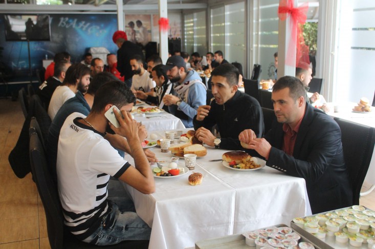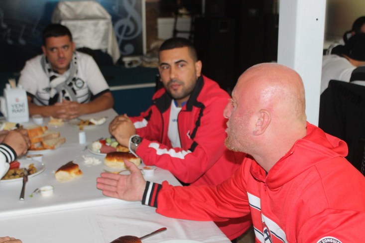 sohbet eden iki kulübün taraftarları kahvaltının ardından birlikte hatıra fotoğrafı
