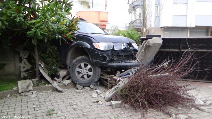 Araçta maddi hasar meydana gelirken, şoför Serkan D. ise kazadan yara almadan kurtuldu. Bina sakinleri olay anında gürültünün şokuyla evin önüne koştular. Bir aracın bahçe duvarına çarparak durabildiğini gören ev sakinleri, durumu polis ekiplerine ve sağlık ekiplerine bildirdiler. Aracın sürücüsü, olay yerine gelen sağlık ekiplerinin ilk müdahalesinin ardından olay yerinden ayrıldı. Olay yerinde doğalgaz kutusunun da bulunduğunu hatırlatan ev sahibi Halil Özcan, "Gece 01.00 civarında evdeydik. Bir gürültü ile kalktık hemen yola doğru baktığımızda bir arabanın duvarı ve bariyerleri yıkarak duvardan içeri doğru girdiğini gördük. Şoförün yanına gittik. Herhangi bir şey olup olmadığını sorduk kendisine, durumunun iyi olduğunu söyledi. Allah'a şükür, sağ salim kurtulduğu için biz de sevinmiş olduk. Bariyerlere vurmasaydı, evin önünde doğalgaz kutusu ve kendi aracımız vardı büyük bir facia olurdu. Bariyerler sayesinde kazayı ucuz atlatmış oldu" dedi.