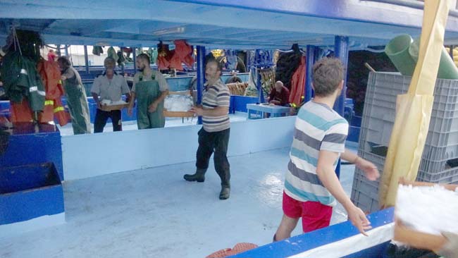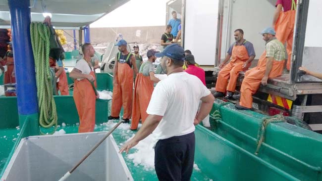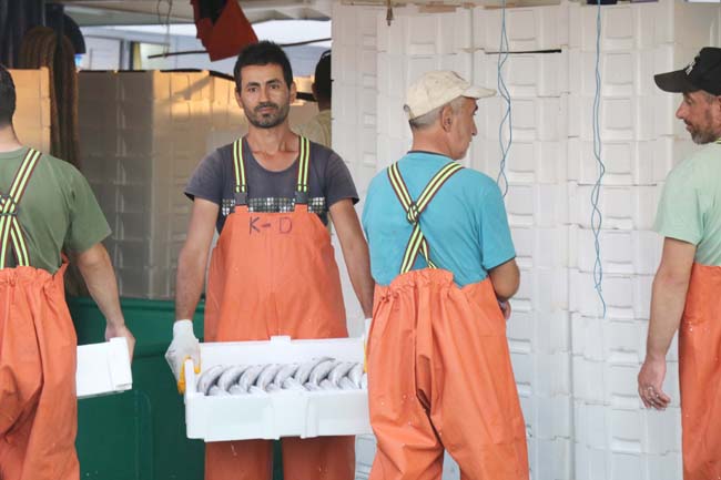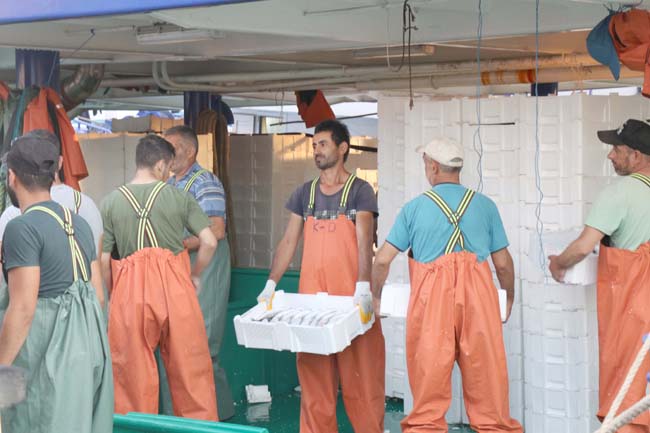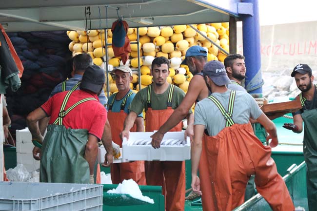 Balıkların kasalarla kamyonlara yüklenerek Ankara, İstanbul, Bursa’ya gönderdiklerini ifade eden Kaşif Cihan, “Şu an bu teknede 30 mürettebat çalışıyor. Bu 30 kişiyle bitmiyor. Çalışanların aileleriyle birlikte 150- 200 kişiye ekmek veriyor. Bu tekne bacasız fabrika. 4 gündür denizdeyiz ilk defa karaya geldik. Buradan kasalara koyulup kamyon ve tırlarla Ankara, İstanbul, Bursa’ya gönderiyoruz” dedi.