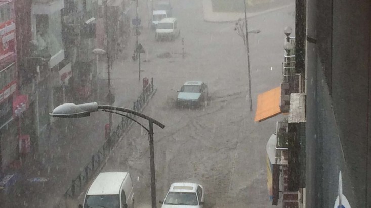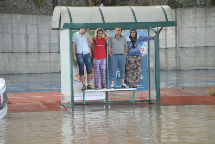 kaldı. Rögarlar şiddetli yağmur sularına yetişemedi. Taşan yolda güçlükle ilerlemeye