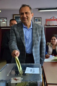ile birlikte Fener Lisesi'ne gelerek oyunu kullandı. Oy kullanma işleminin