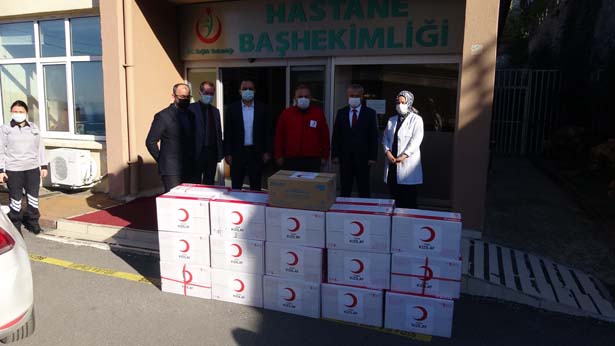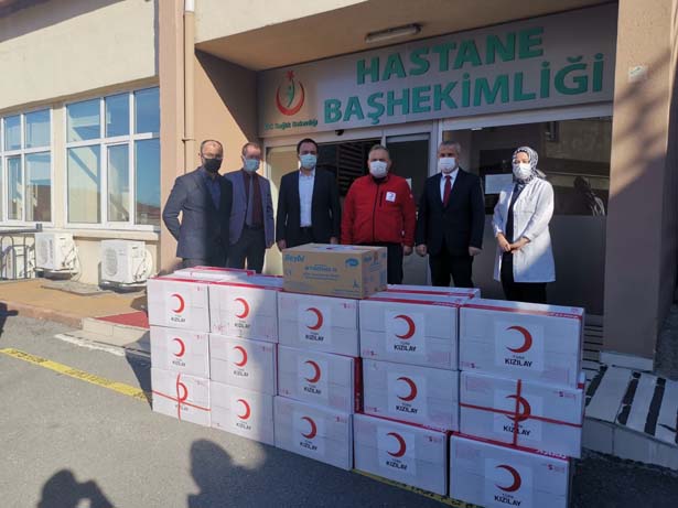 Türk Kızılayı Zonguldak Şubesi Atatürk Devlet Hastanesine 60 bin adet eldiven hibe edildi. Sabah saatlerinde Atatürk Devlet Hastanesi önünde koruyucu malzemelerin teslimi için tören düzenlendi. Törende konuşan Türk Kızılayı Zonguldak Şube Başkanı Aydın Ergenç, Türk Kızılayı Zonguldak Şubesi olarak sağlık çalışanlarımızın her zaman arkasındayız ve her zaman olmaya devam edeceğiz. KOrkonavirüs tedavisi gören hastalarımız ekiplerimiz tarafından takip edilip plazma cihazımız geldi. Türk Kızılayı olarak 30 vilayetimizde plazma alıyoruz. Zonguldak vilayetimizde bu illerden bir tanesi 6 Kasım itibariyle plazmada almaya başladık. Hastanelerimizde yatıp tedavi gören hastalarımız takip edip kan merkezimiz çağırıp onlarında plazmalarını almaya devam ediyoruz” şeklinde konuştu.