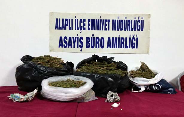 Zonguldak'ın Alaplı ilçesinde bir otomobilde arama yapan polis ekipleri 15 kilo esrar, 100 gram kokain, 1.5 kilo kenevir tohumu, 100 adet uyuşturucu hap ele geçirdi.