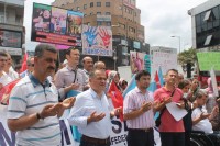 Madenci Anıtı'nda toplanan sendika üyeleri, ellerinde afiş ve pankartlarla Çin aleyhinde sloganlar attı. Grup adına açıklama yapan Memur-Sen basın sözcüsü Sinan Davulcu, Çin yönetiminin her güne yeni bir katliamla başladığını söyledi.