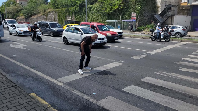 İddiaya göre, yola atlayarak hem kendi canını tehlikeye sokan hem de sürücülere zor anlar yaşatan E.A. yı gören vatandaşlar 112 acil durum merkezine ihbarda bulundu. Olay yerine gelen polis ve sağlık ekipleri E.A. yı sakinleştirmek için çaba sarf etti. Polis ve Sağlık Ekiplerine zor anlar yaşatan E.A., kırmızı ışıkta bekleyen araçların önüne geçmek isteyince polisin müdahalesi ile karşılaştı. Uzun süren uğraşlar sonrasında sakinleştirilen E.A. ambulansa alınarak hastaneye kaldırıldı. Çevredeki vatandaşlar yaşanan olayı merakla izledi.
